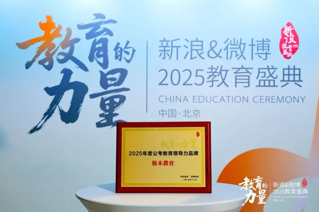 2025年12月17日,格木教育执行总裁覃伟在北京领取了“新浪&微博2025年度公考教育领导力品牌”荣誉,该奖项由新浪教育与微博教育联合发起的2025教育盛典评